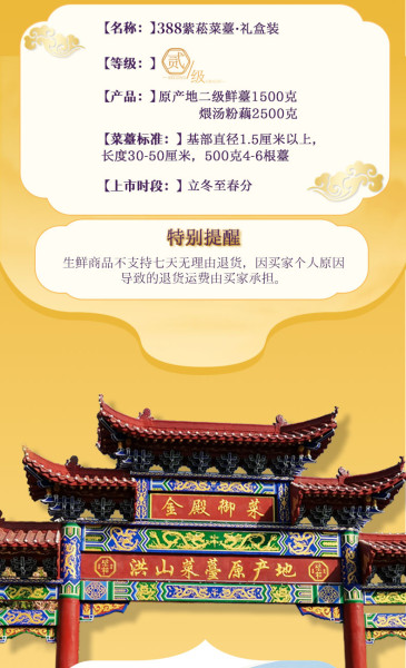 新薹预售 正宗原产地洪山菜薹精拼装礼4000克 产量有限 头茬预先抢购,净重4000克,内含洪山菜薹1500克,湖北连藕2500克。